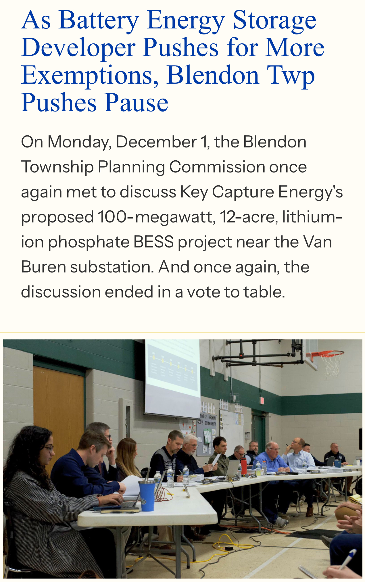 As Battery Energy Storage Developer Pushes for More Exemptions, Blendon Twp Pushes Pause...